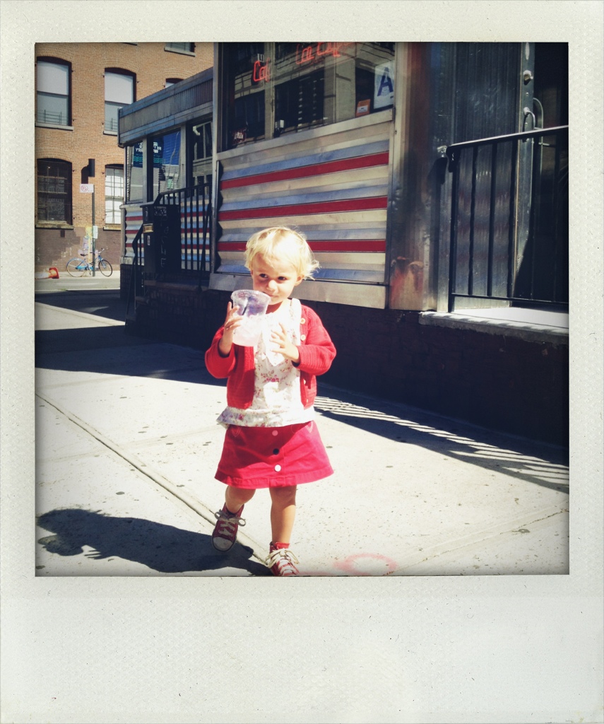 Farther on Bedford we found the Van Leeuwen ice cream truck. While the pistachio was too faint, too unpistachio-y, subtle was the key of the Earl Grey ice cream, which was quite a revelation in fact. There were no complaints from Balthasar and his classic strawberry/vanilla cup. Louise had to share and wasn’t thrilled about that.