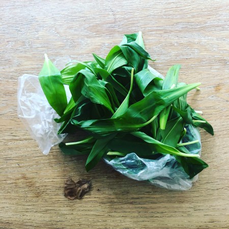 In a small frying pan, briefly ‘wilt’ the wild garlic in a drop of oil.