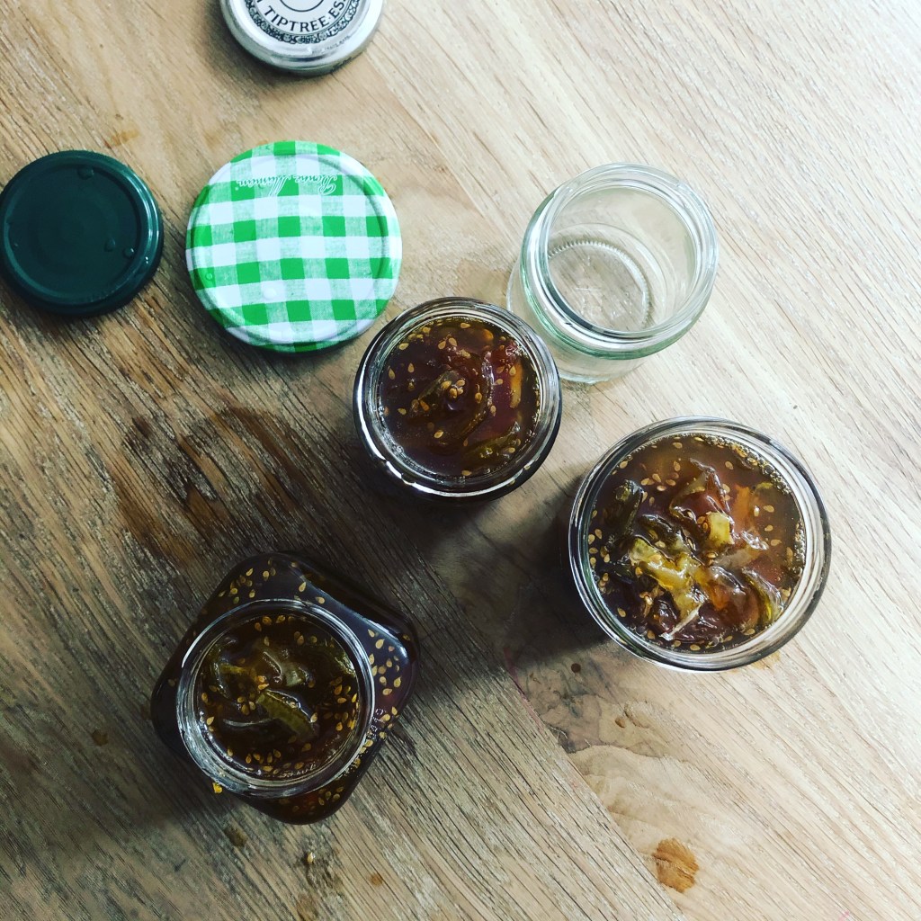 I remember just one person in my childhood who made green tomato jam, my father’s godmother Lily (from her I also have my favourite recipe for clafoutis, and an early fixation on quince in the form of cotignac). I never got Lily’s green tomato jam recipe, but the memory remains, and this method works very well.
