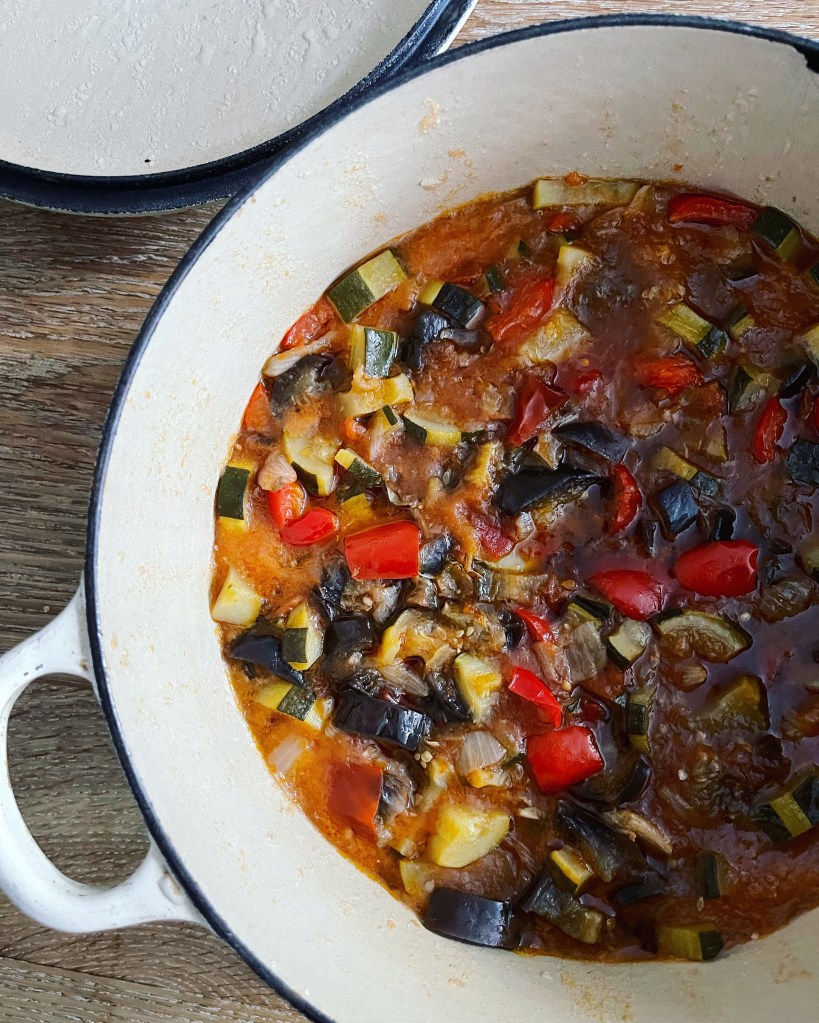 Preheat the oven to 175C (350F). Line a 24cm (9″) cake tin with parchment paper and butter generously.