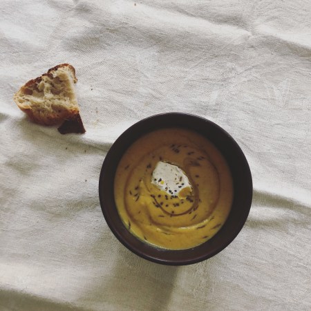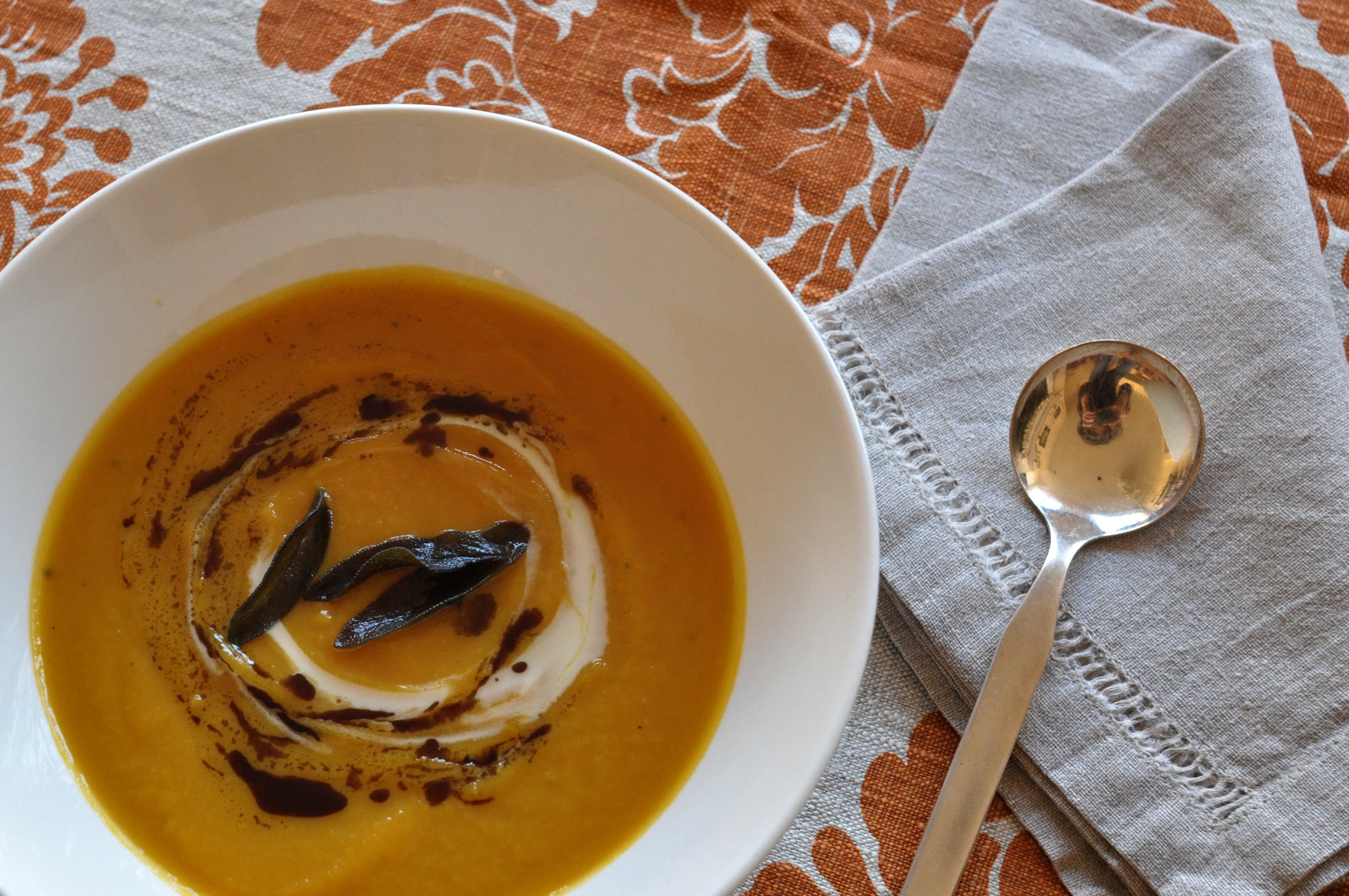This is the soup you want to come home to if you’ve spent the afternoon outside and let dusk fall around you, the chill creeping until your cheeks are flushed and your fingertips frozen. If by any chance you’ve already cut the squash and prepared the cubes (undoubtedly the lengthier proposition in this recipe), the rest can be assembled fairly quickly.