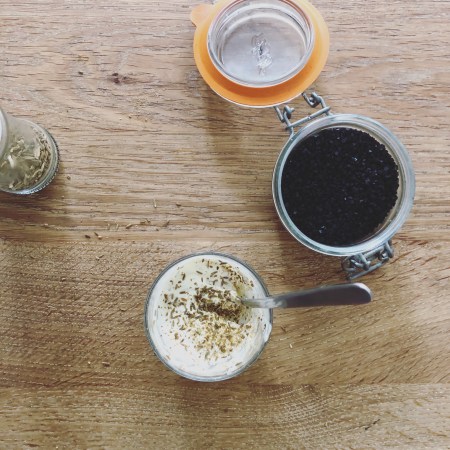 Finishing touches: yogurt mixed with toasted ground cumin and fennel and lemon juice; a sliver of olive oil or chili infused oil; if available, black lava salt