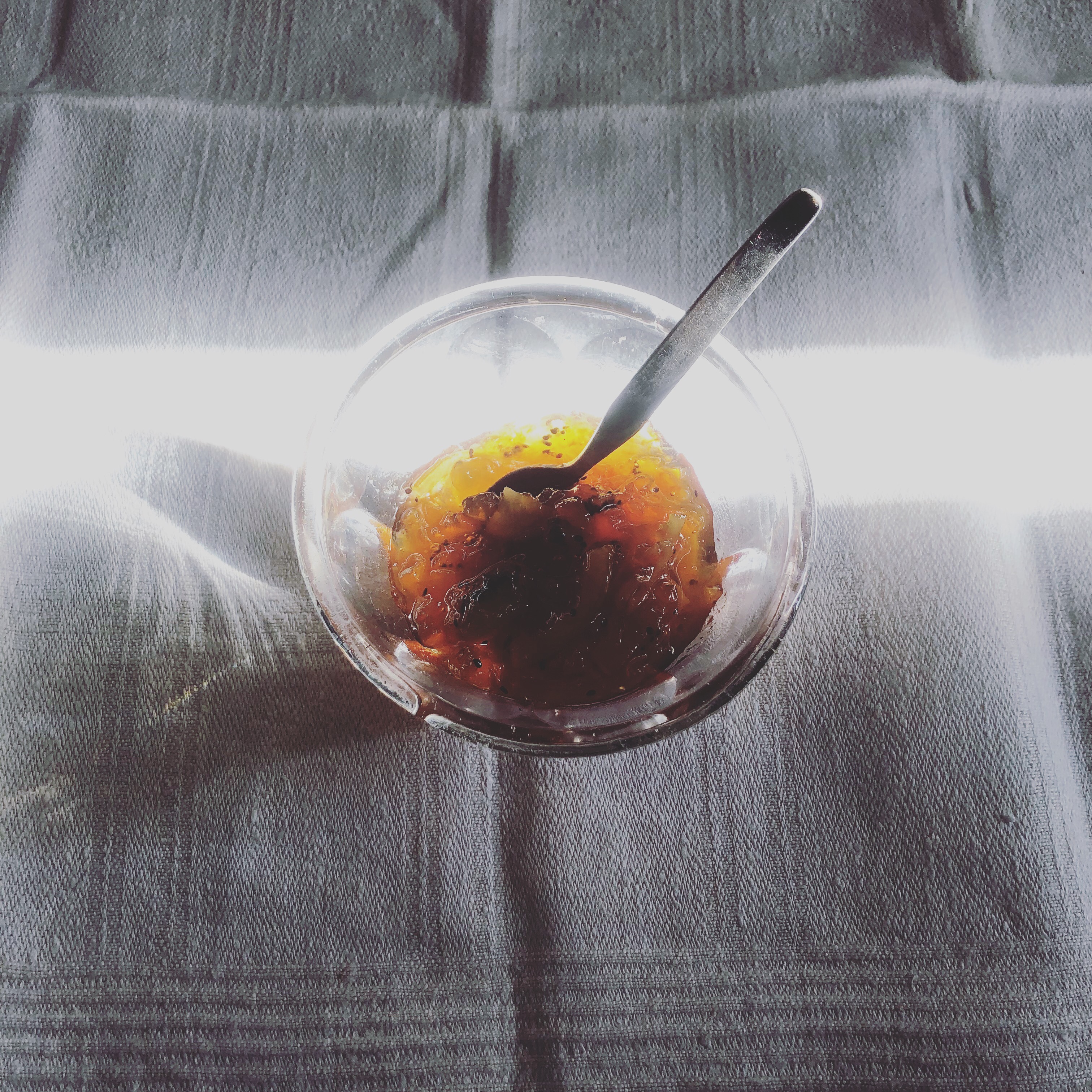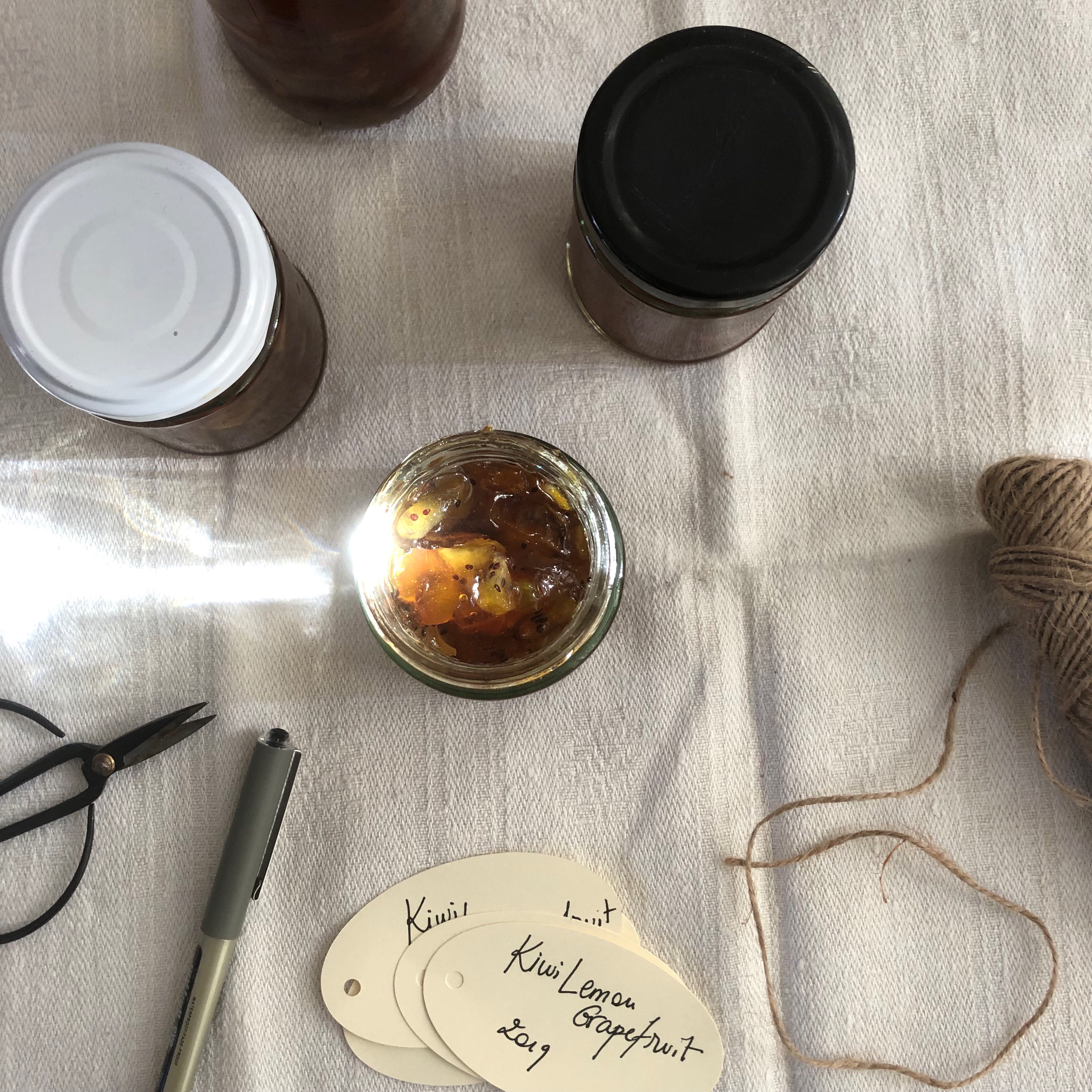I much prefer fresh bay leaves to dried ones and have grown bay for as long as I can remember, whether on windowsills, balconies, or now in our small garden. It’s very easy to grow, and it is imperative to know your bay leaves when cooking with them, as some can be extraordinarily potent. Leaves from my sister’s tree in Brittany have such an intense flavour that a single leaf nearly overpowered a ratatouille for ten. My potted plant is much tamer and I used three small leaves in this jam.