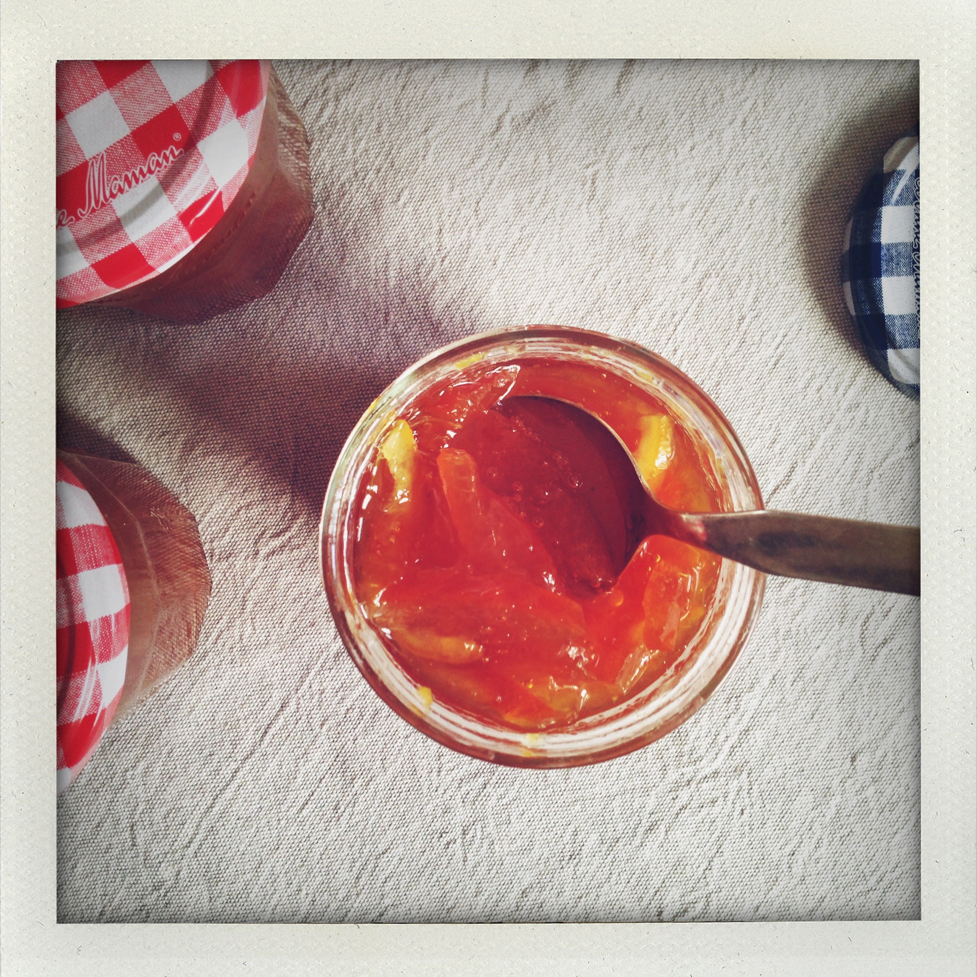 [ => To check that the jam is setting, place a spoonful in a saucepan in the fridge for a few minutes and check that the liquid is starting to run thick.]