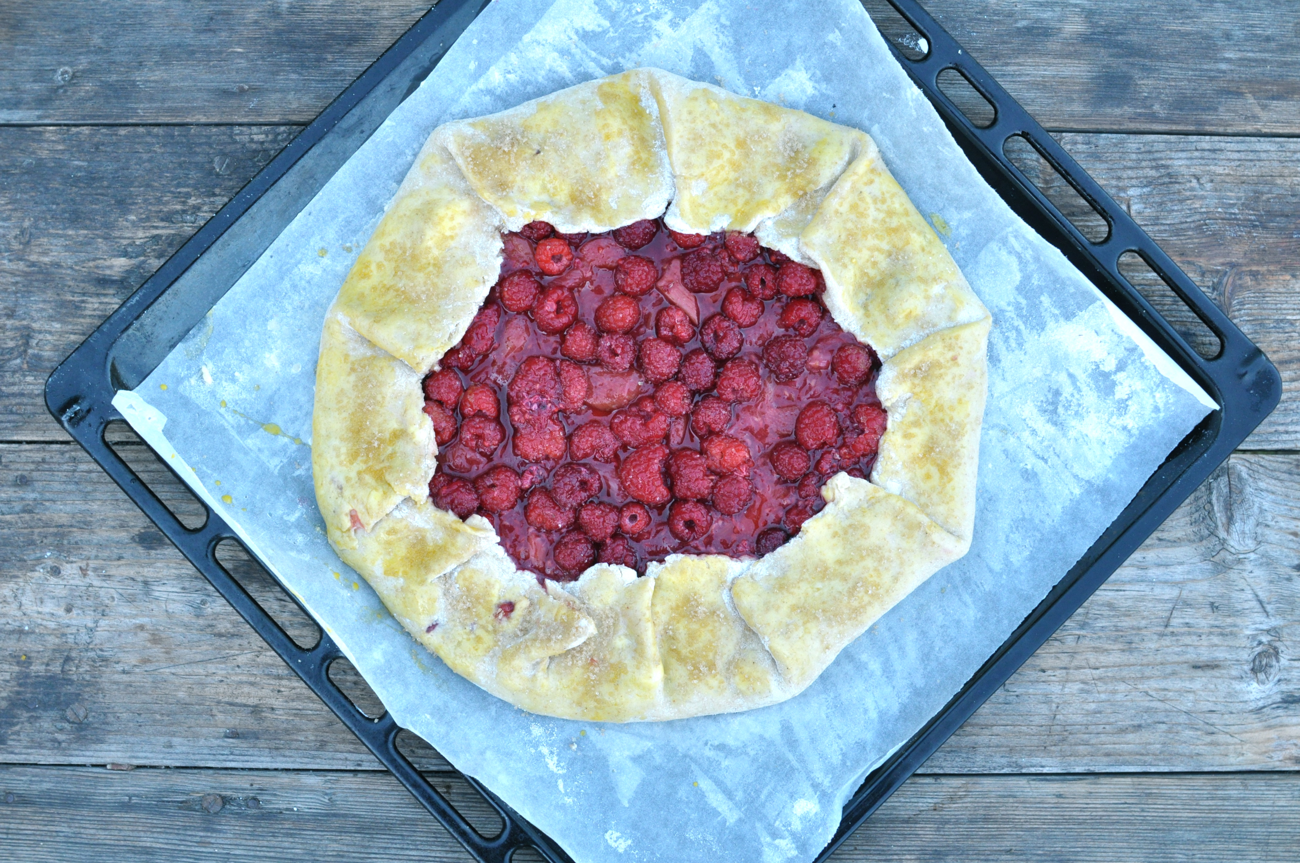 I bought rhubarb, as I always do; eyed the raspberries calling out for prompt picking; and remembered that a friend had recently raved about this crostata. The decision seemed to make itself.